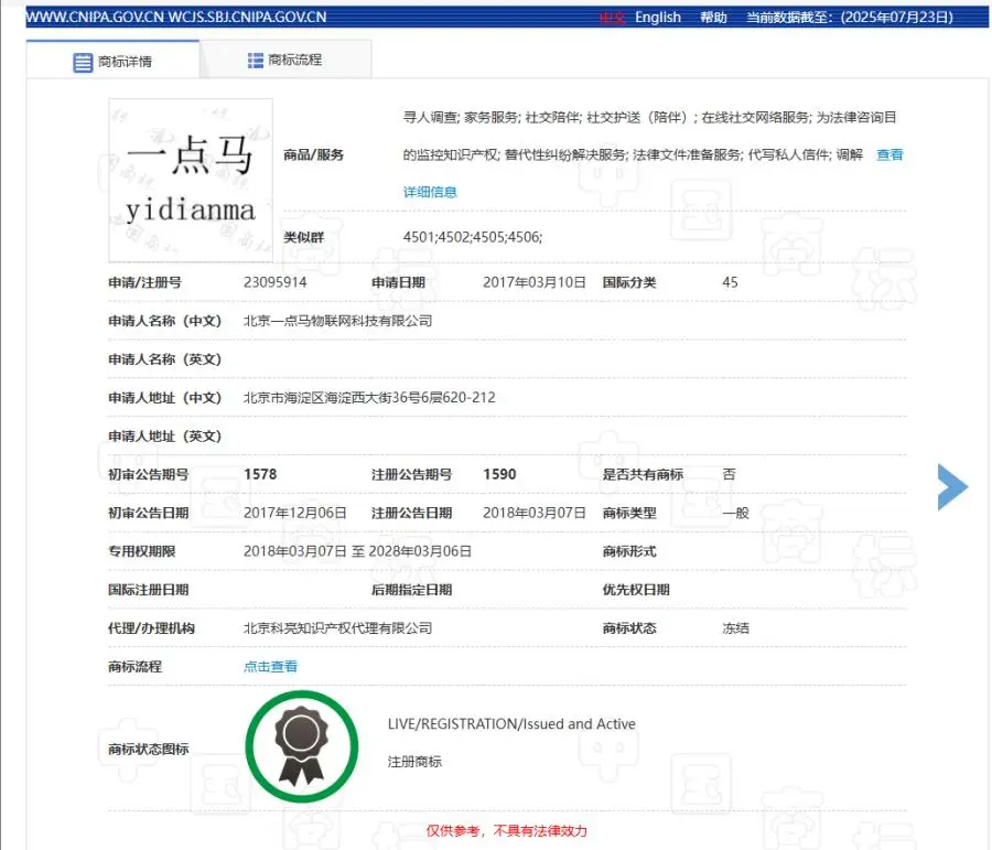 ♦拍卖标的:被执行人北京一点马物联网科技有限公司拥有的“一点马”商标